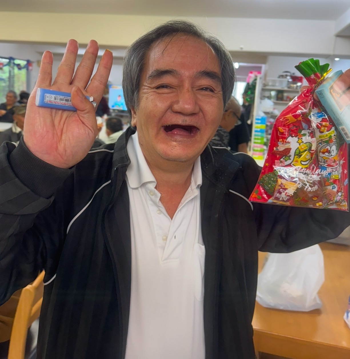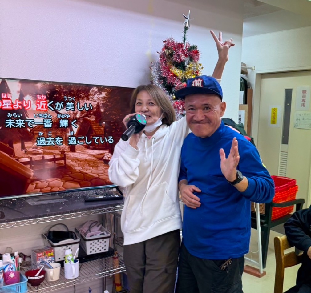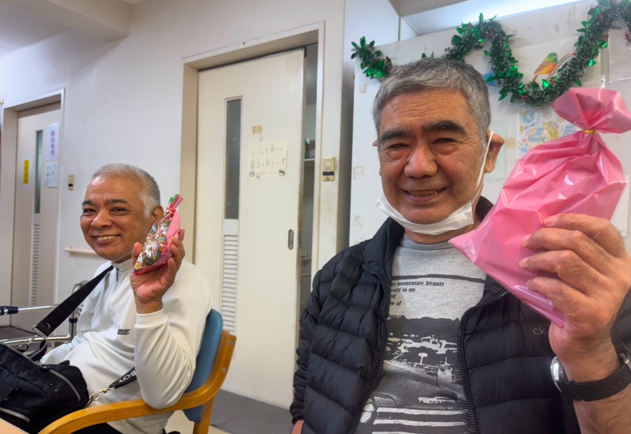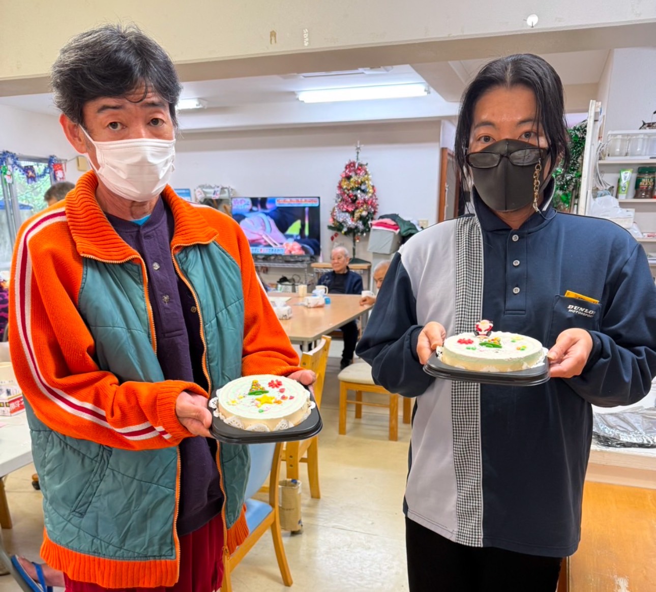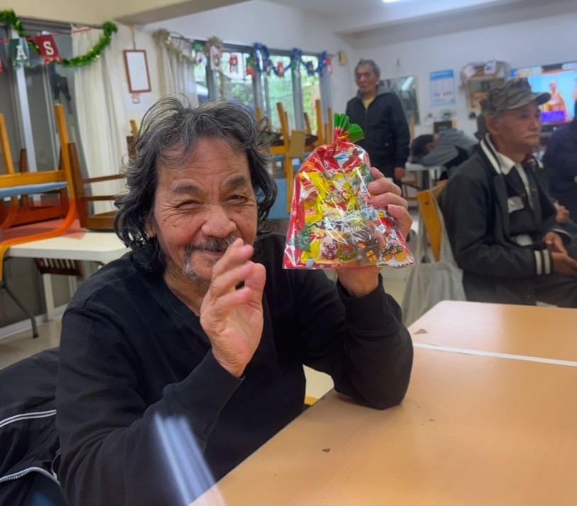 2024.12.30 クリスマスパーティー♪ メリークリスマス2024☆ 毎年恒例のクリスマスパーティー♪ 午前中はカラオケ大会やマジックショーのお楽しみ会!普段マジックを観る機会がないのでみなさん興味津々 お昼はミニバイキング開催! チキンにチラシ寿司、軟骨ソーキやエビチリ、刺身に焼き鳥などなど、食べ残しも無く全て完食でした♪ 午後はクリスマスケーキとコーラでカフェタイム 帰りにお菓子の詰め合わせをプレゼント♪ 今年もみなさんの笑顔でいいクリスマスでした.+゜ < 初詣秋のお出かけ >